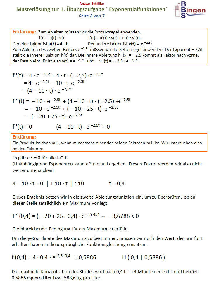 zurück zu den Aufgaben "Exponentialfunktionen"