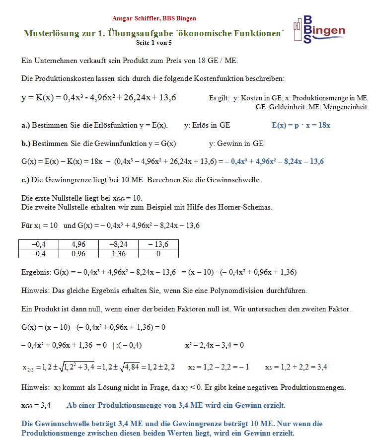 zurück zu den Aufgaben 'ökonomische Funktionen'