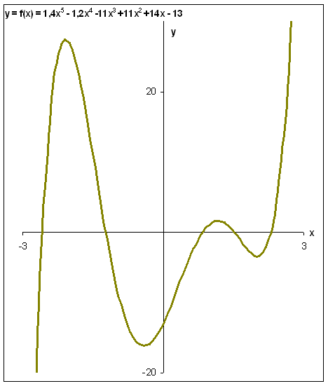 y = f(x) = 1,4·x5 -1,2·x4 - 11x3 + 11x2 + 14x -13