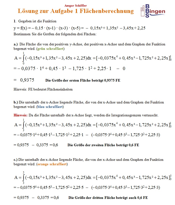 Eine weitere Aufgabe zur Flächenberechnung: