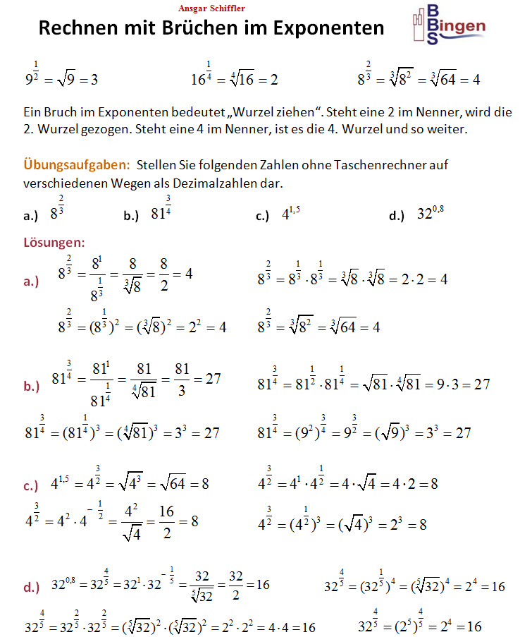 zurück zu 'Übungsaufgaben "Rechnen mit Potenzen"