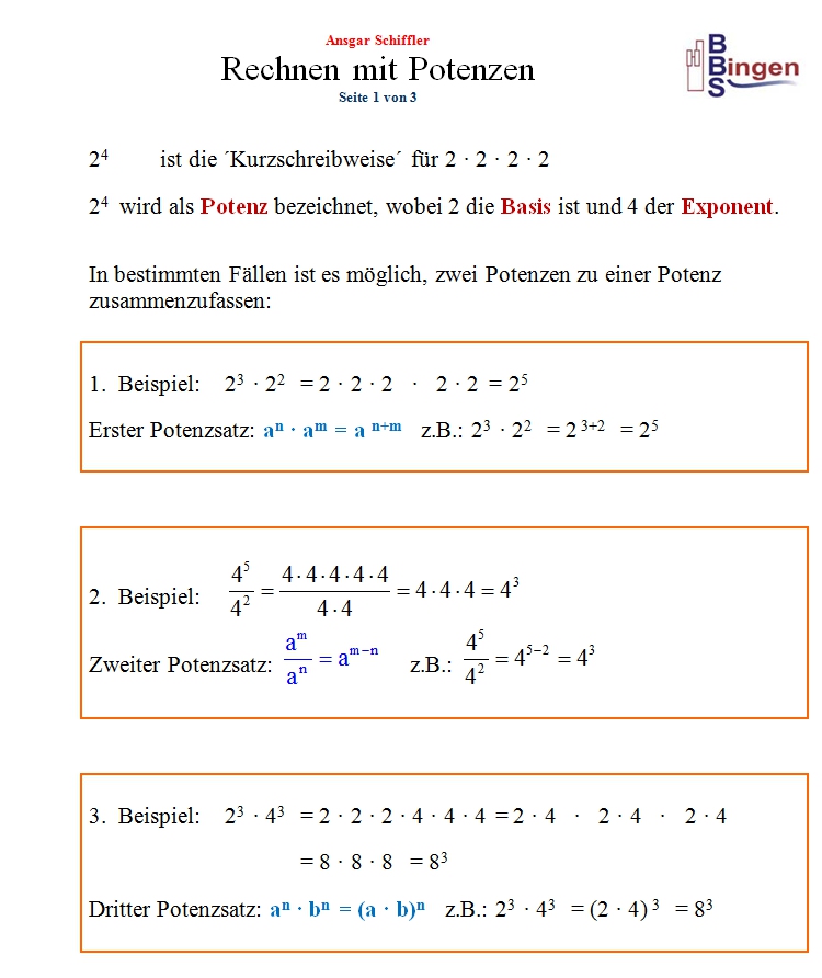 zurück zu Potenzen
