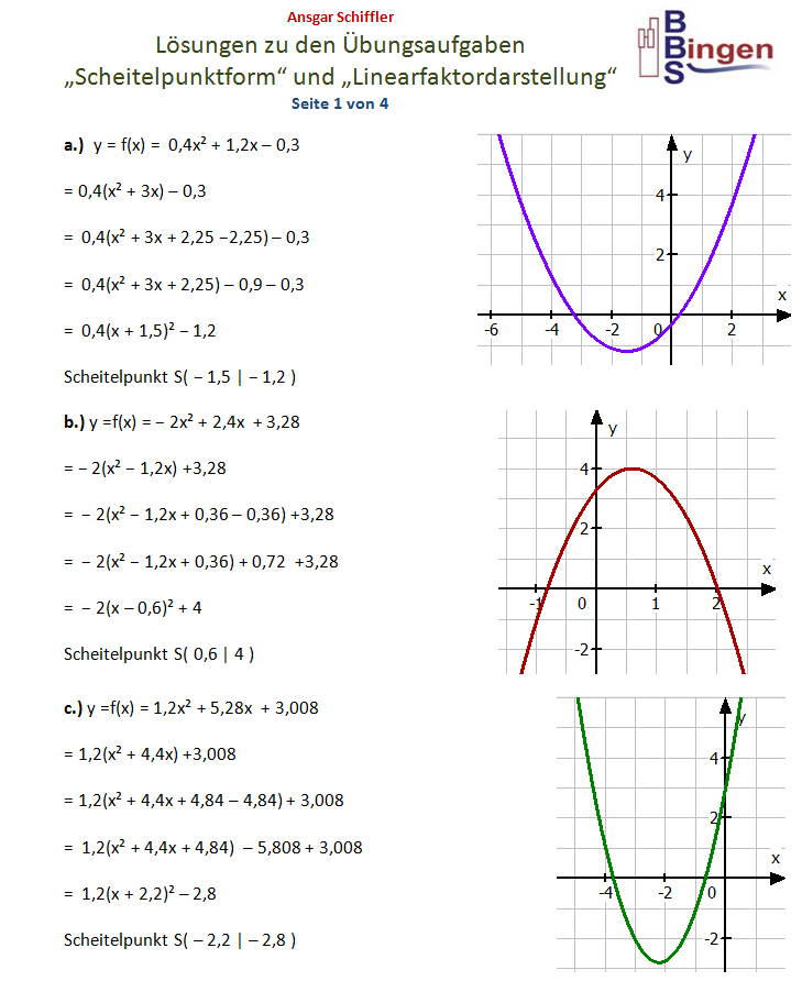 zurück zu 'quadratische Funktionen'